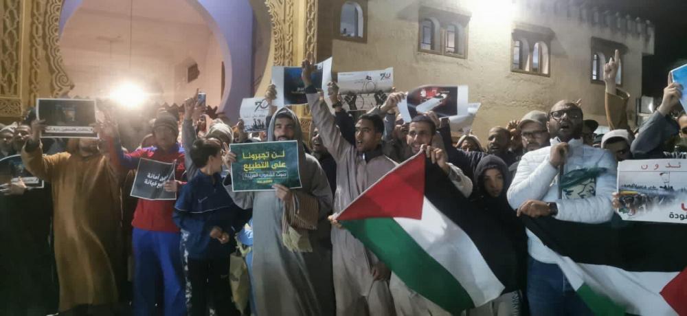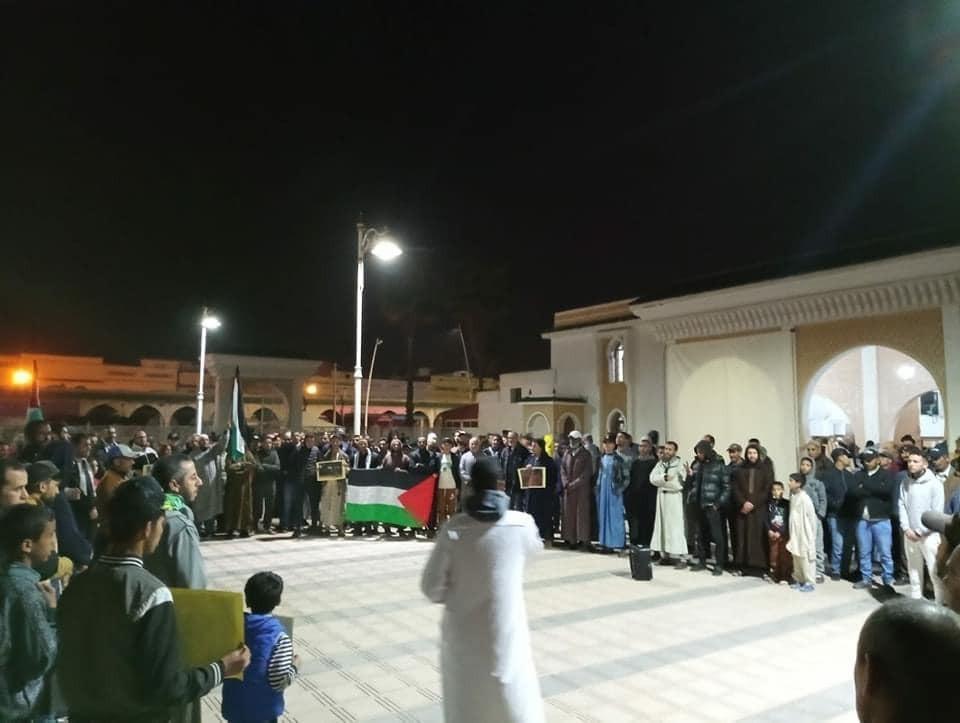 ووفق مقاطع فيديو وصور نشرها حقوقيون من "الهيئة المغربية لنصرة قضايا الأمة" بمنصات التواصل الاجتماعي، جرت الوقفات مباشرةً بعد صلاة التراويح.