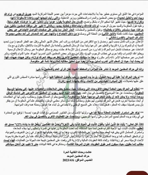 وفيما يلي بيان صادر عن حراك المعلمين: