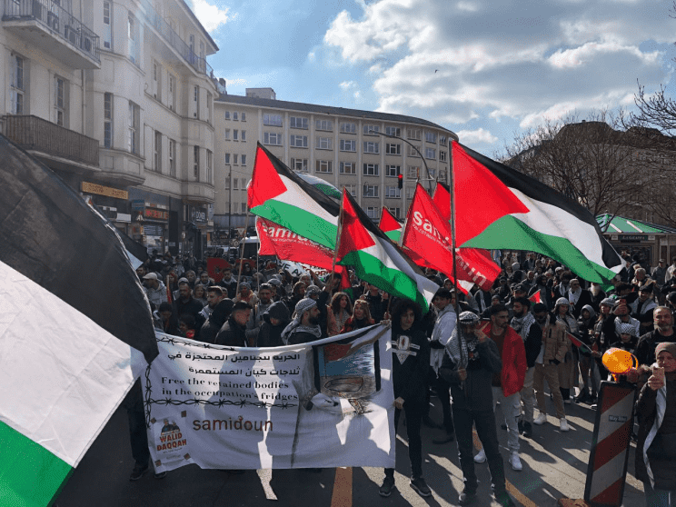 وألقيت كلمات باسم "شبكة صامدون" و"الحملة الدولية لتحرير جثامين الشهداء" باللغتين العربية والالمانية، كما شاركت في المظاهرة قوى أممية وعربية ولجان المقاطعة وتجمعات نقابية وشبابية في برلين.