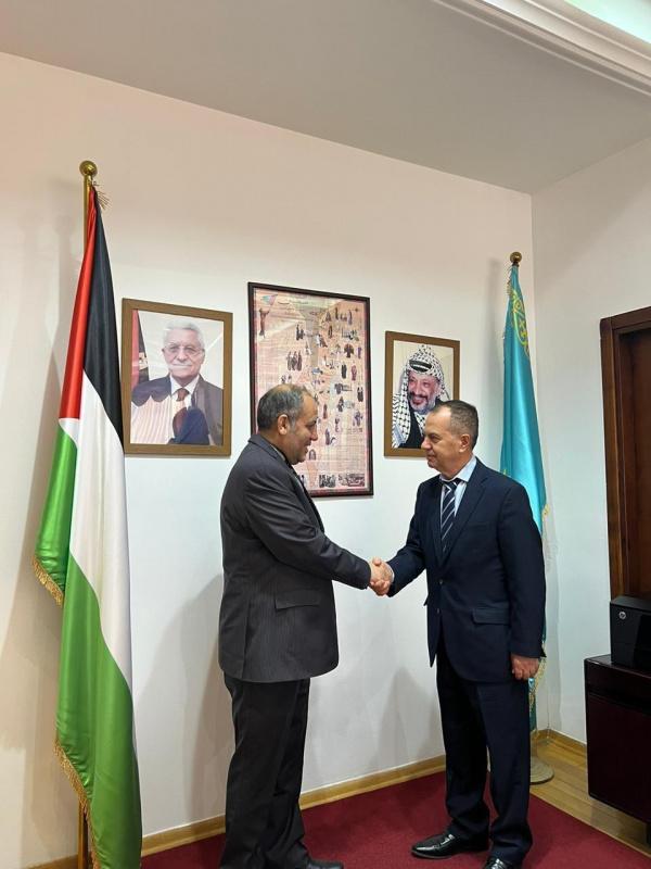 استقبل سفير دولة فلسطين وعميد السلك الدبلوماسي لدى كازاخستان،  د. منتصر أبو زيد، نظيره الإيراني الجديد "علي أكبر  جوكار"، عقب تقديم أوراق اعتماده مباشرة للرئيس الكازاخستاني قاسم جومار  توكايف.