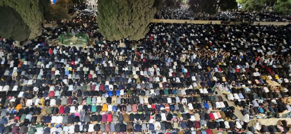 واكتظت باحات ومصليات المسجد الأقصى بالمصلين الذين جاءوا من الضفة الغربية ومدينة القدس، ومن أراضي الـ 48، رغم قيود الاحتلال وحواجزه.