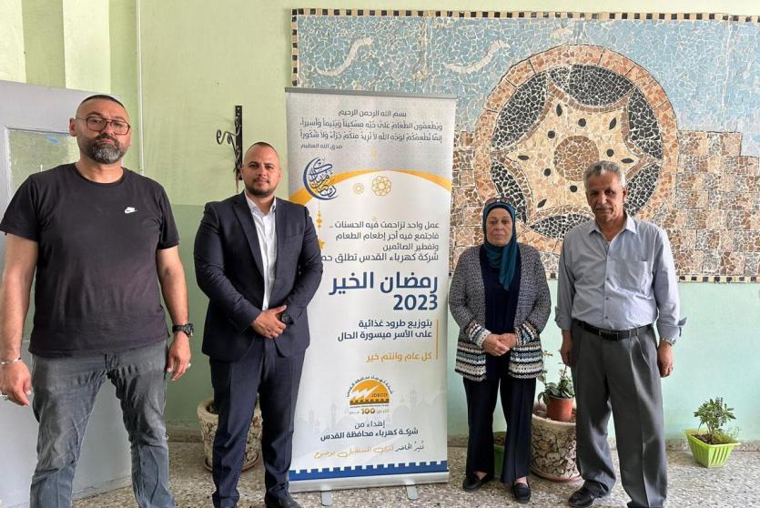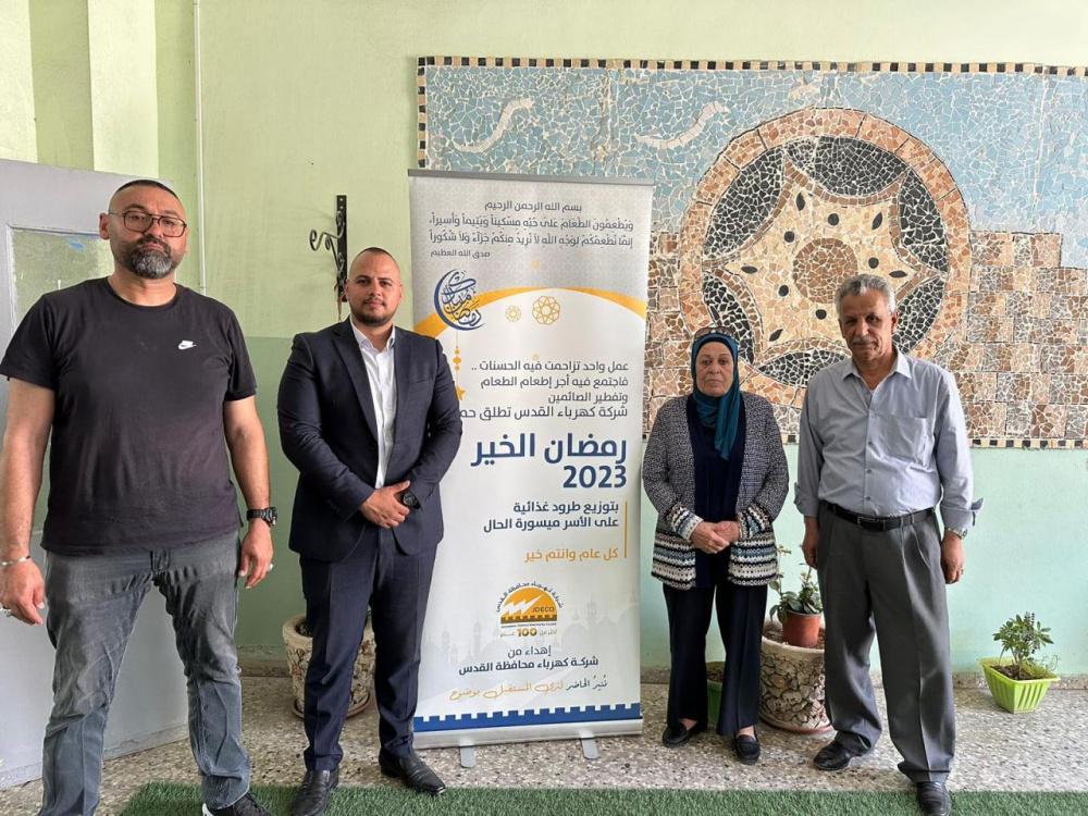 من جانبها، شددت ايمان جودة أهمية خطوة شركة كهرباء القدس في دعم الأسر ميسورة الحال والفقيرة من خلال حملة رمضان الخير 2023 وبخاصة خلال الشهر الفضيل .