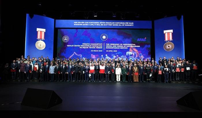 وقلد الرئيس أردوغان سفير دولة فلسطين لدى تركيا فائد مصطفى، ومدير عام الوكالة الفلسطينية للتعاون الدولي (بيكا) عماد الزهيري، وسام الجمهورية للتضحية، وذلك في مراسم رئاسية رسمية تم تنظيمها في القصر الرئاسي بأنقرة، بمشاركة أكثر من 90 دولة ساهمت في عمليات الإنقاذ ورفع الأنقاض، عقب الزلزال الذي ضرب مناطق الجنوب التركي في شهر شباط الماضي.