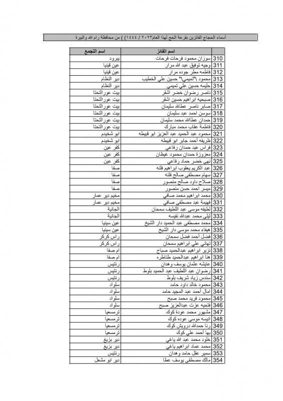 أسماء الحجاج الفائزين بقرعة الحج لهذا العام2023 / 1444) ) من محافظة رام الله والبيرة