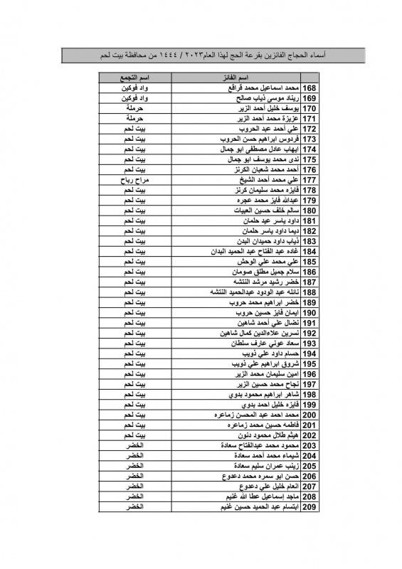 أسماء الحجاج الفائزين بقرعة الحج لهذا العام 2023 / 1444) ) من محافظة بيت لحم