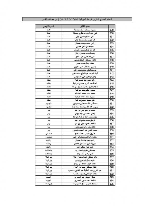 أسماء الحجاج الفائزين بقرعة الحج لهذا العام 2023 / 1444) ) من محافظة القدس