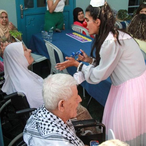يقوم طاقم المهرجين بعمل زيارات دورية لأقسام الأطفال في المستشفيات ومراكز الرعاية للمسنين، 900 زيارة سنوياً في 13 مستشفى فلسطيني من القطاع العام و 7 دور رعاية للمسنين في الضفة الغربية والقدس، ومن منطلق ايمانها أن الضحك والفكاهة هو جزء أساسي في عملية تقبل العلاج، تسعى المؤسسة إلى نشر هذه الثقافة في المؤسسات الطبية والاكاديمية من خلال عقد تدريبات وورشات عمل عن أهمية الفكاهة في الرعاية الصحية لطلاب التمريض في الجامعات والطواقم الطبية في المستشفيات ، حيث أنجزت المؤسسة ما يقارب 8 ورشات حول الفكاهة في الرعاية الصحية خلال عام 2022.