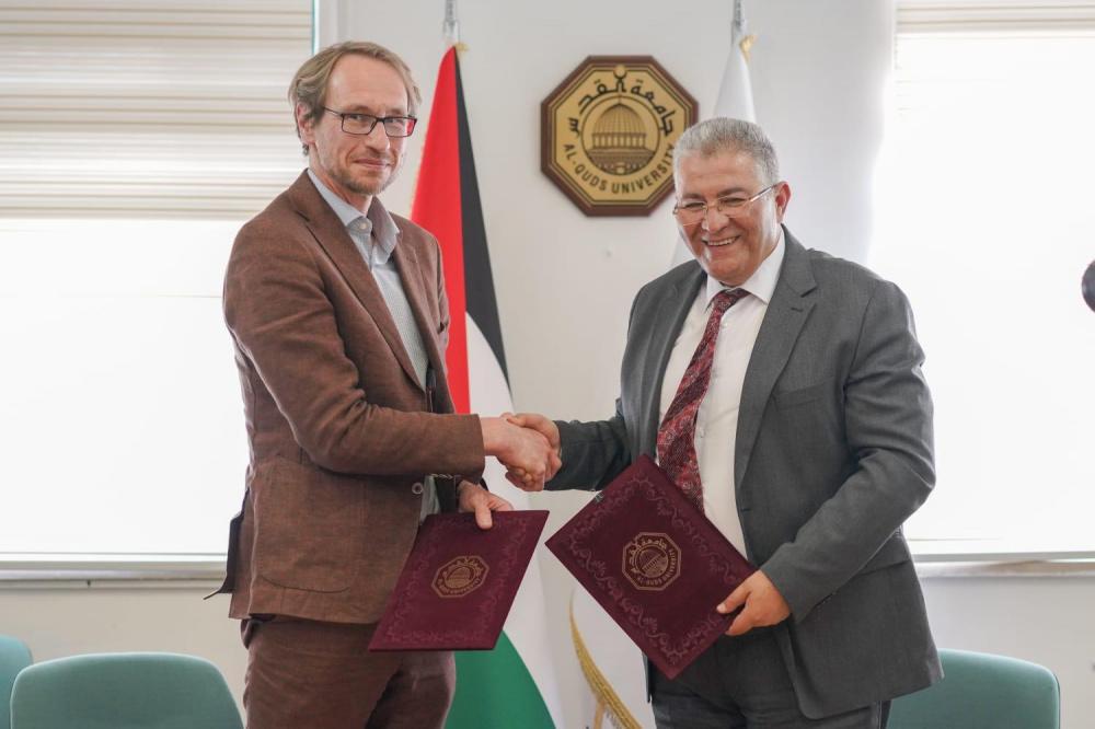 هذا ووقع رئيس الجامعة أ.د. عماد أبو كشك ورئيس برنامج المزيد من فرص العمل للشباب الفلسطيني د.شتيفين انترمان اتفاقية تعاون بحثي وتبادل طلابي وأكاديمي، بحضور وفد من الوكالة والممثلية الألمانية، وعدد من شركات القطاع الخاص، ونواب رئيس الجامعة وطاقم الدراسات الثنائية.