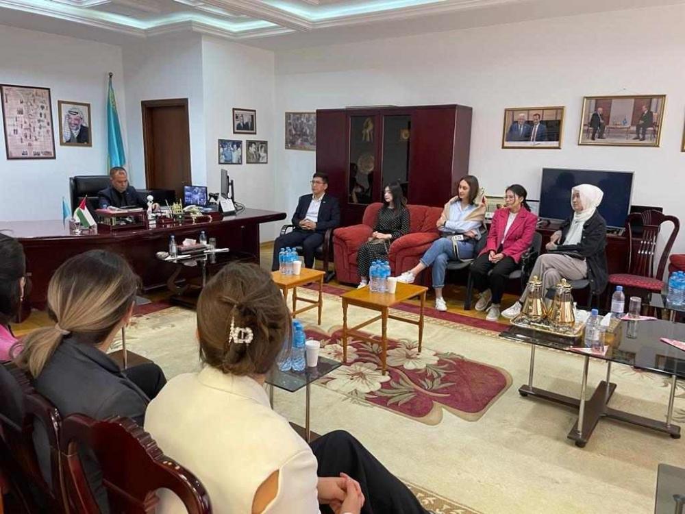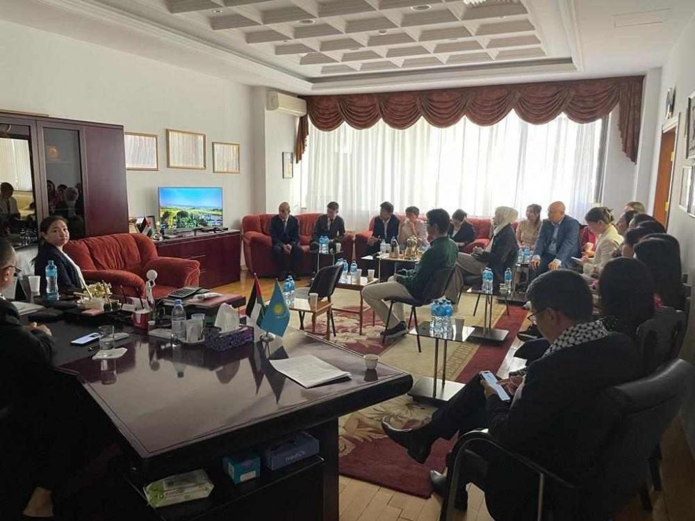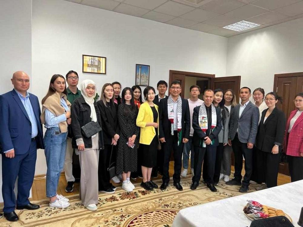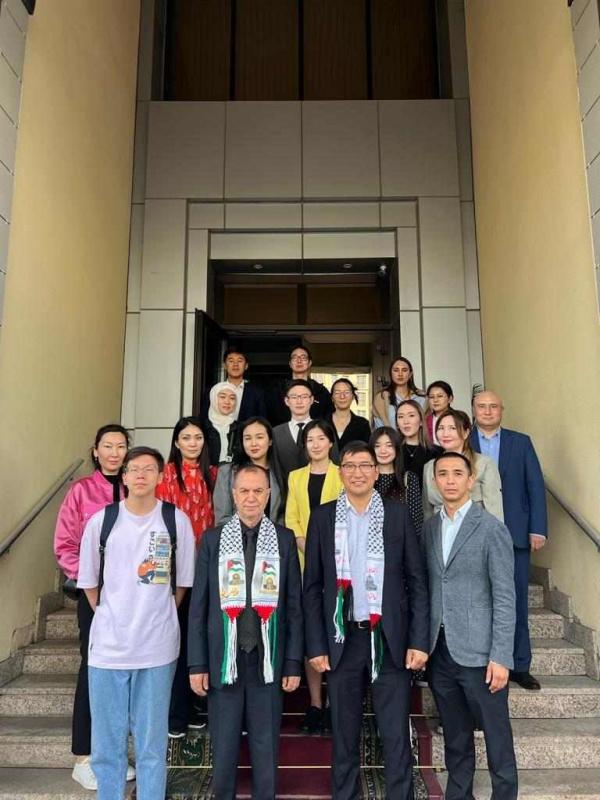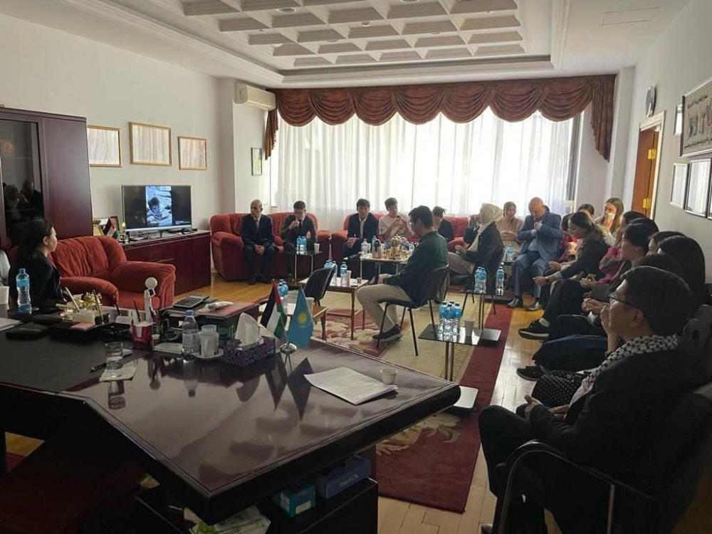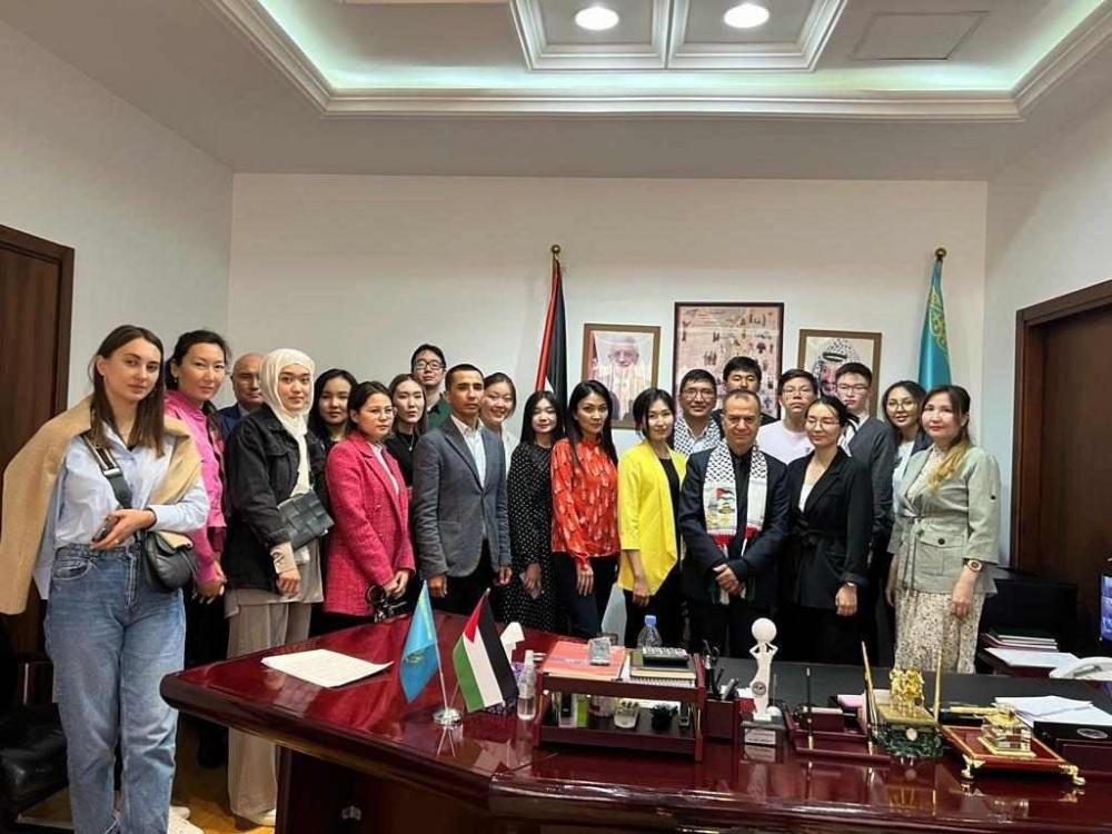 وألقى السفير الفلسطيني عميد السلك الدبلوماسي العربي والأجنبي لدى جمهورية كازاخستان، د. منتصر أبو زيد محاضرة أمام طلاب وطالبات المدرسة الدبلوماسية في مقر السفارة الفلسطينية في العاصمة أستانا.
