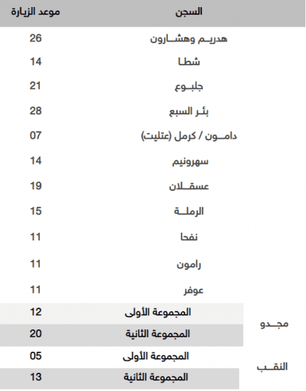 برنامج زيارات أسرى جنين وطوباس لشهر حزيران القادم