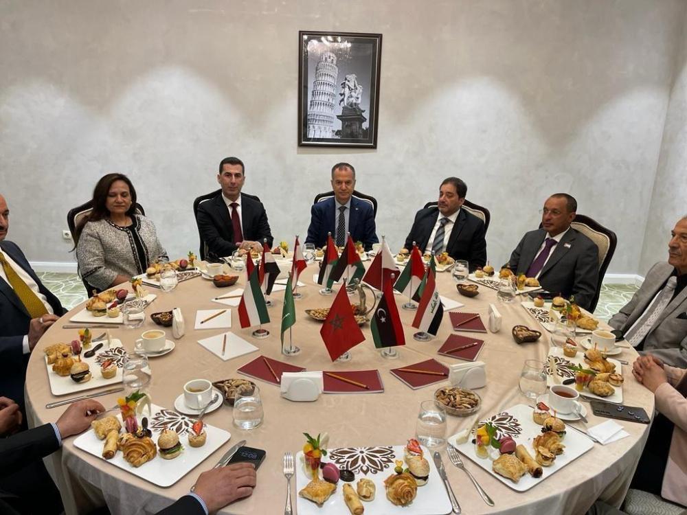 وعُقد الإجتماع بحضور كل من سفراء لبنان ومصر وقطر وسلطنة عمان والإمارات والكويت والجزائر والسعودية والقائمي بأعمال العراق وليبيا والمغرب.