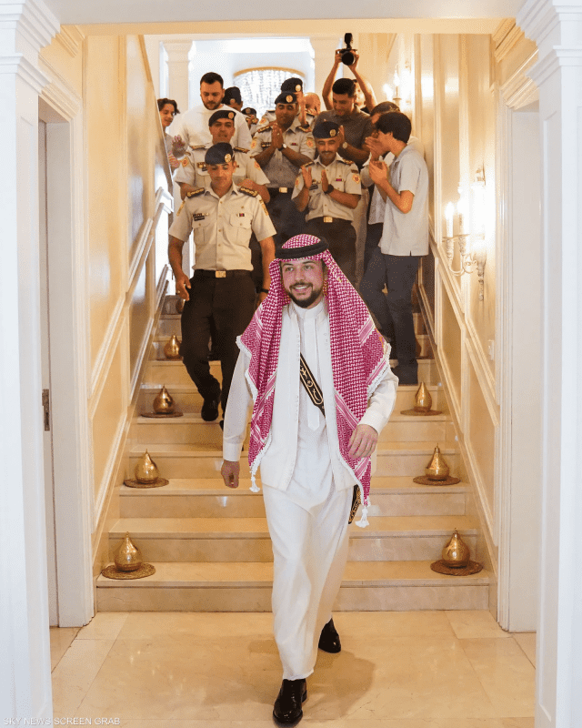 ونشر ولي العهد الأردني على حسابه على إنستغرام صورة من حمام العريس وعلق عليه: "الشكر الكبير للشباب الطيبة من الأقارب والزملاء في الجيش العربي على اللفتة العظيمة.. كفيتو ووفيتو".