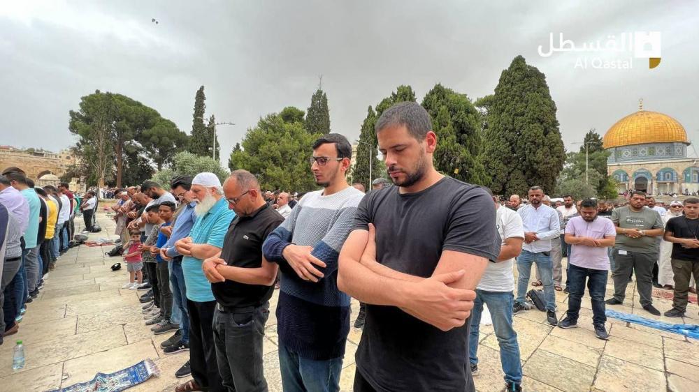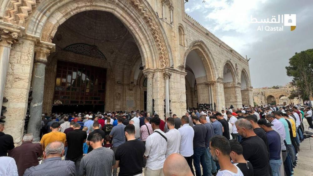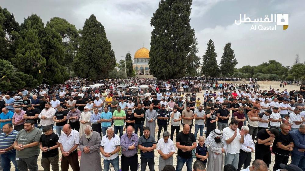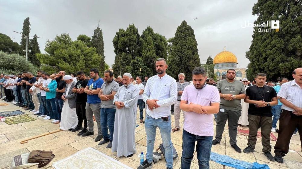 واكتظت ساحات المسجد الأقصى وباحاته بآلاف المصلين، الذين قدموا من محافظات الضفة بما فيها القدس المحتلة، وداخل أراضي العام 48.