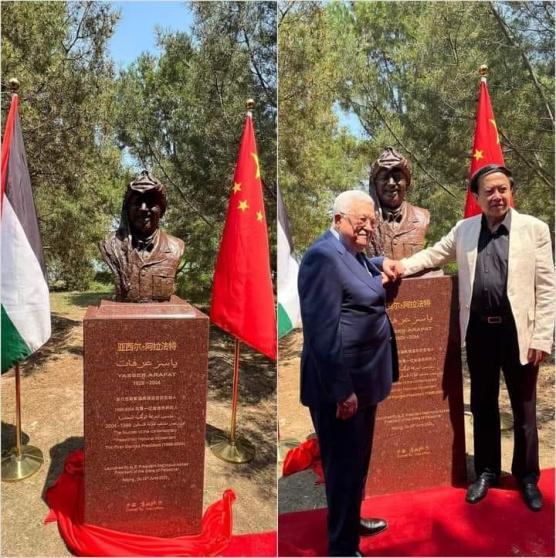 أزاح الرئيس محمود عباس، اليوم الجمعة، الستار عن مجسم تذكاري للرئيس ياسر عرفات في حديقة المتحف الصيني في بكين، مختتما بذلك زيارة دولة رسمية إلى جمهورية الصين الشعبية استمرت ثلاثة أيام.