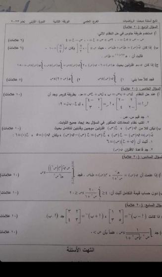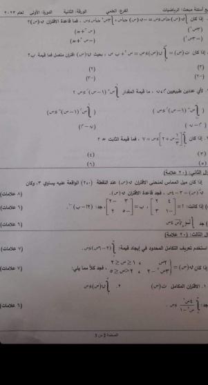 حلول امتحان الرياضيات الورقة الثانية العلمي: