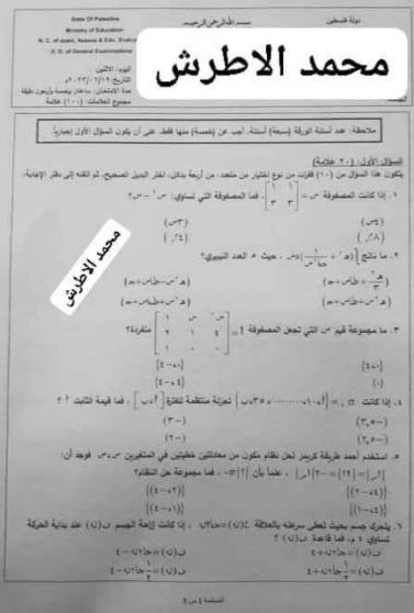 اجابات امتحان الرياضيات الورقة الثانية علمي توجيهي فلسطين 2023