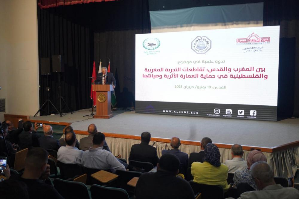 وتخلل الزيارة ندوة علمية بعنوان: "بين المغرب والقدس: تقاطعات التجربة المغربية والفلسطينية في حماية العمارة الأثرية وصيانتها"، شارك فيها من دائرة الهندسة المعمارية الأستاذ عبد الرحمن الكالوتي في مداخلة عن "الموروث الثقافي: توجه فعال باستخدام وسائل التواصل المعماري"، ومداخلة للـ د. مها السمان حول "الحداثة والموروث الثقافي في مدينة القدس: بين الصمود وفرص الحفاظ المعماري"، وتحدث د. عمر يوسف بدوره عن تحديات ترميم وتأهيل السكن في البلدة القديمة- القدس.