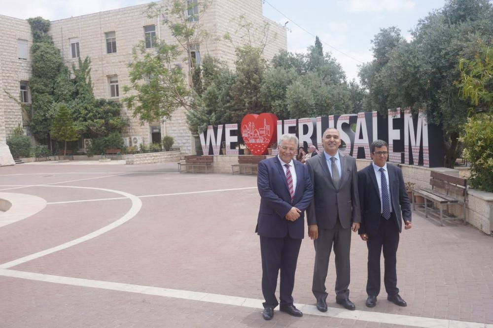 والتقى الوفد على هامش الزيارة عددًا من نواب رئيس الجامعة، وباحثين وأكاديميين من كلية الهندسة المعمارية، حيث أكد النائب التنفيذي أ.د. حسن دويك أهمية الزيارة ودورها في الحفاظ على مدينة القدس، وقدم نبذة عن نشأة الجامعة وكلياتها في مدينة القدس، والمسؤولية المجتمعية التي تضطلع بها الجامعة تجاه المدينة وأهلها من خلال عمل مراكزها لخدمة الأهالي.