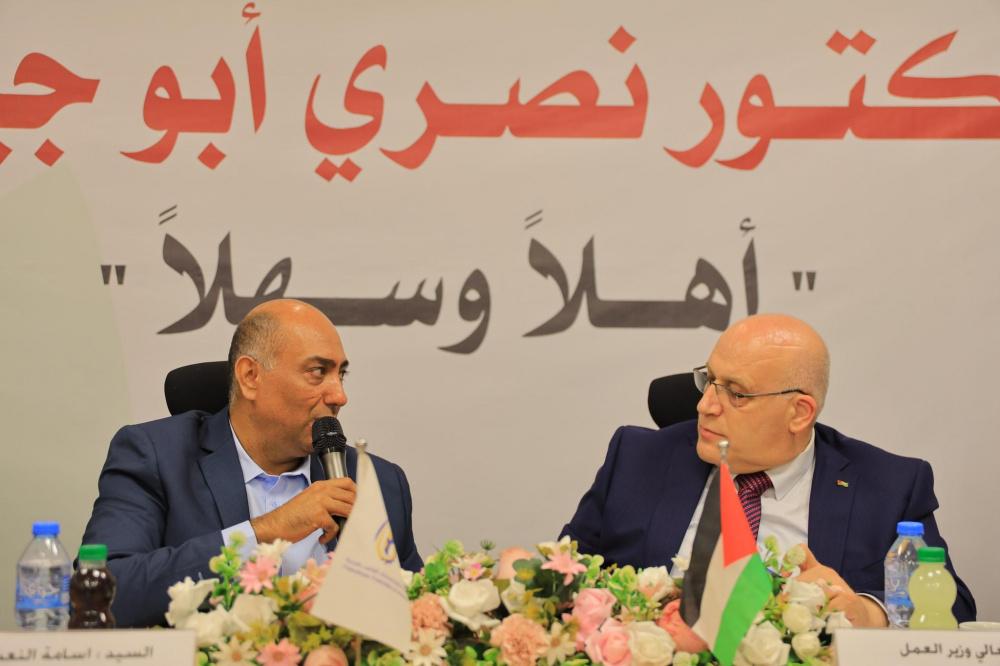 وبدوره تحدث السيد اياد نصر وكيل وزارة الشؤون المدنية عن دور القطاع الخاص واهمية الشراكة مع مؤسسات القطاع الخاص باعتبارها اهم المؤسسات واكد كذلك على دور الشؤون المدنية في دعم العمالة والعمال وتسهيل كافة العقبات التي يواجهها ابناء شعبنا