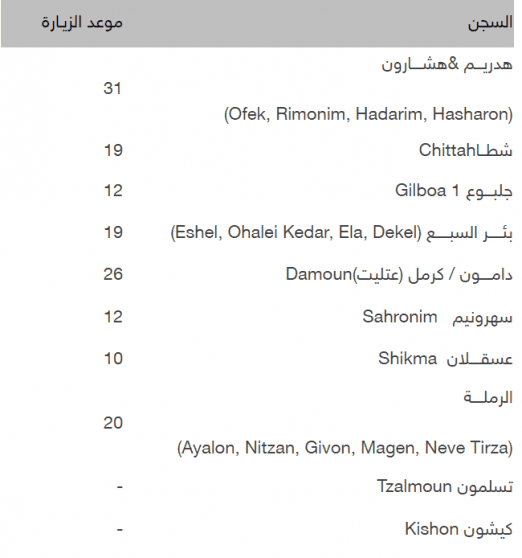 برنامج زيارات أسرى جنين وطوباس لشهر تموز المقبل