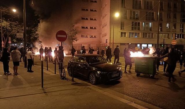 وقبل منتصف الليلة الماضية بقليل، اشتعلت النيران في صف من السيارات المقلوبة على طريق بابلو بيكاسو في ضاحية نانتير، فيما أطلق المحتجون الألعاب النارية على الشرطة.
