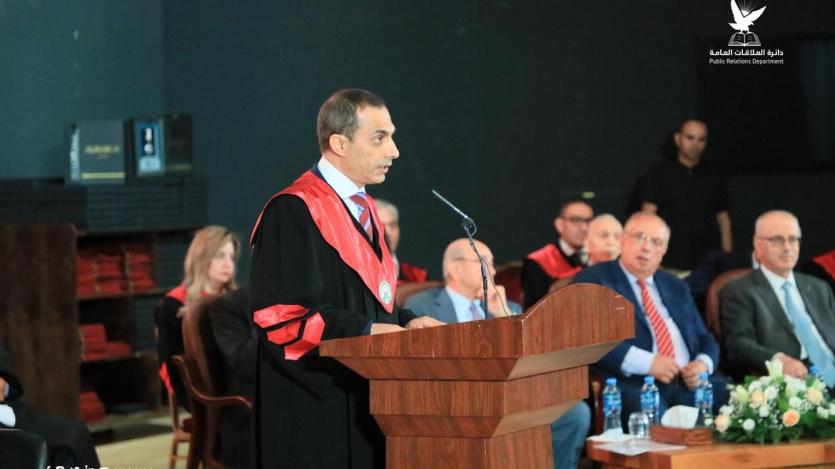 وتحدث عن الإنجازات الأخيرة التي حققتها جامعة النجاح الوطنية لتبقى في طليعة جامعاتِ الوطنِ العربيِّ، ومقدمة جامعات العالم أيضاً في التصنيفات العالمية المعروفة، وأشار إلى البرامج الأكاديمية الجديدة والعصرية التي استحدثتها الجامعة مؤخراً، مما يبرهن قدرتها على التحدي والبقاء والصمود، والتميز.
