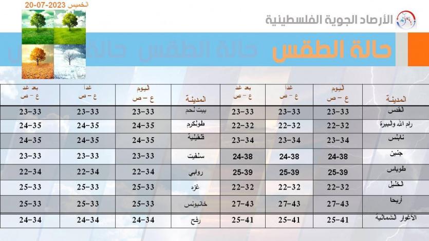 وفيما يلي تفاصيل النشرة الجوية الصادرة عن دائرة الارصاد: