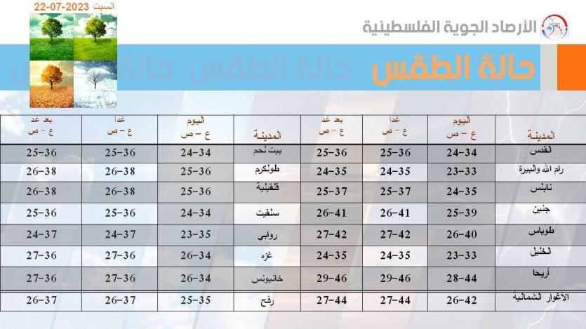وفيما يلي درجات الحرارة العظمى والصغرى المتوقعة: