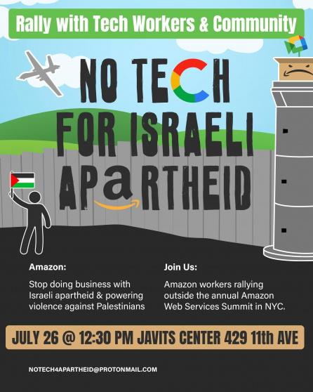 ويستعد النشطاء لجمع حشد أكبر من العاملين في الشركتين وأيضا من المدافعين عن الحقوق الفلسطينية، للاعتصام أمام قمة Amazon Web Services السنوية في مدينة نيويورك في الـ26 من الشهر الجاري بعنوان: "#NoTechForApartheid"، لإيصال رسالة إلى إدارة الشركتين برفض السماح بالعمل كالمعتاد طالما أن أمازون تواصل جني الأرباح من العنف والقمع اللذين يواجههما الفلسطينيون يوميًا.