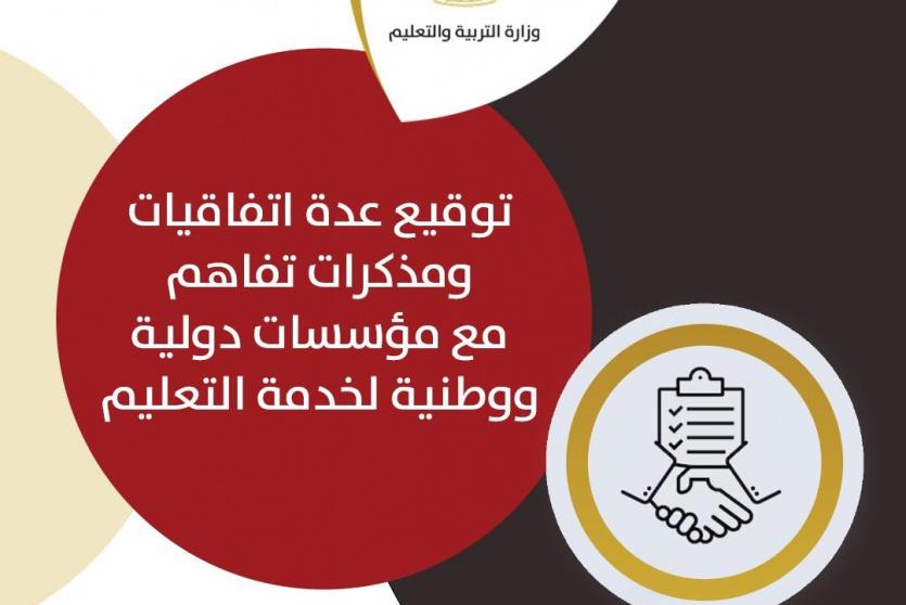 أبرمت وزارة التربية والتعليم، اتفاقيات ومذكرات تعاون مع بعض المؤسسات الدولية والوطنية والمجتمع المدني والمنظمات الشريكة؛ بما ينسجم والأولويات والاحتياجات التربوية، لخدمة التعليم وتطويره.