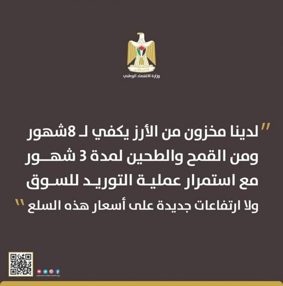 نفت وزارة الاقتصاد الوطني، اليوم الثلاثاء، إشاعات حدوث نقص في السلع، مؤكدة أن مخزون الأرز في السوق يكفي لـثمانية أشهر، ومخزون القمح والطحين لفترة ثلاثة أشهر، وهو يلبي احتياج المواطنين.