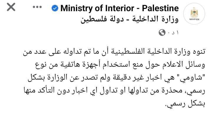 أصدرت وزارة الداخلية اليوم الخميس، تنويها مهما حول ما يتم تداوله على عدد من وسائل الاعلام حول منع استخدام أجهزة هاتفية من نوع "شاومي".