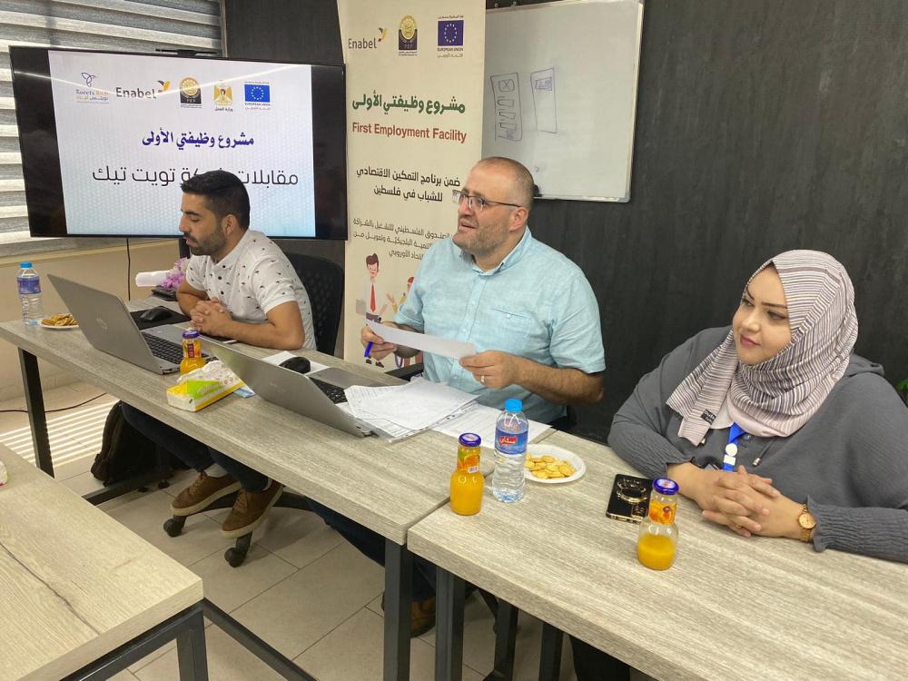 استكمالاً لإجراءات اختيار الخريجين المستفيدين من مشروع وظيفتي الأولى الذي ينفذه الصندوق الفلسطيني للتشغيل، ضمن برنامج التمكين الاقتصادي للشباب، بالشراكة مع الوكالة البلجيكية للتنمية، وبتمويل من الاتحاد الأوروبي، أجرى طاقم المشروع الذي يضم كل من منسقتي المشروع بالضفة الغربية وقطاع غزة م. نسمة السيد، ومجد اشتيوي، ورئيس قسم خدمات تطوير الأعمال بالضفة الغربية م. إيناس القبج، ومنسق خدمات التشغيل في قطاع غزة م.علي الزعانين، سلسلة من الزيارات الإشرافية إلى المواقع التي تعقد فيها مقابلات الخريجين المتقدمين للمشروع، وتهدف هذه الزيارات إلى متابعة عملية اختيار الخريجين، لضمان نجاحها وشفافيتها.