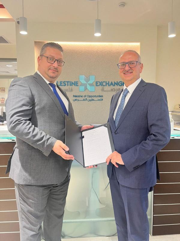 وقّع المدير العام لبورصة فلسطين، نهاد كمال، والمدير العام لشركة "الاعتماد المالي الاستثماري للوساطة المالية"، سامي شريم، اتفاقية "العضوية"، اليوم في مقرّ بورصة فلسطين.