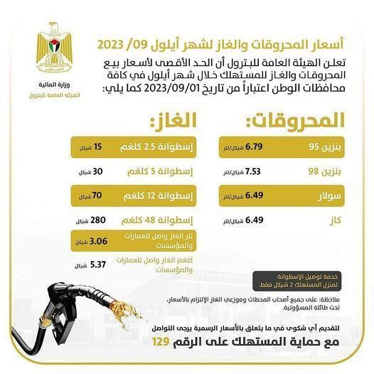 أسعار المحروقات والغاز في فلسطين لشهر 9 سبتمبر 2023
