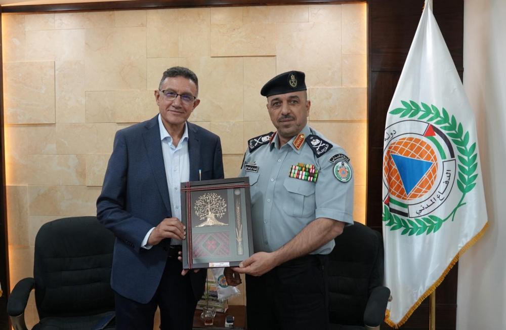استقبل مدير عام جهاز الدفاع المدني اللواء العبد إبراهيم خليل اليوم في مقر الجهاز في مدينة رام الله وفداً من شركة كهرباء محافظة القدس ممثلاً برئيس مجلس الإدارة والمدير العام للشركة المهندس هشام العمري ونائب المدير العام المهندس محمد زيدان ومدير فرع رام الله المهندس ثائر جرادات ومدير فرع بيت لحم المهندس جواد أبو زر ومدير الدائرة الفنية المهندس صلاح علقم والسيد فراس جبران مدير العلاقات العامة الخارجية والبروتوكول في الشركة  .
