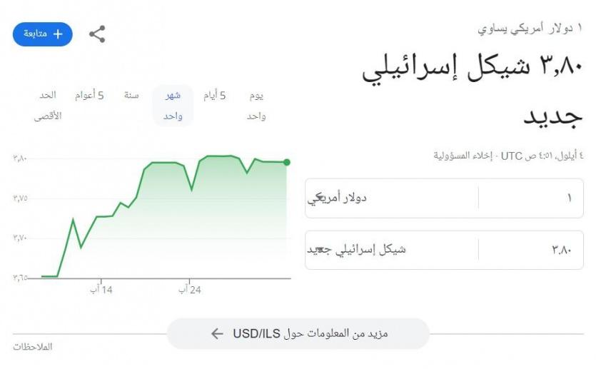 أسعار صرف العملات مقابل الشيكل في فلسطين