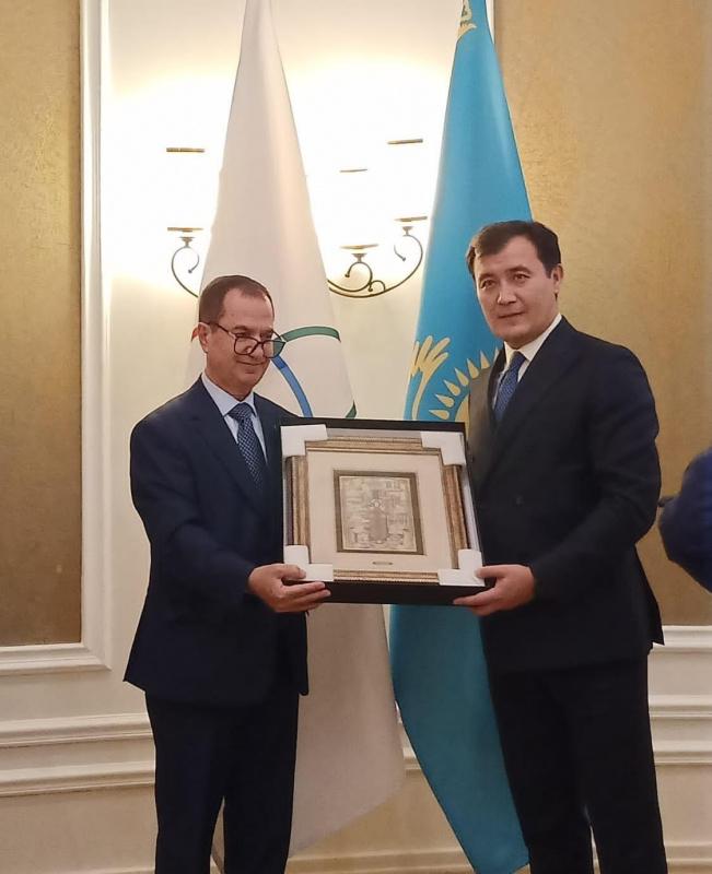 وقدم السفير أبو زيد هدايا تذكارية بهذه المناسبة باسم السلك الدبلوماسي العام للأمين العام للـ “CICA” السفير "قيرات ساريباي" ، والنائب السابق لوزير الخارجية الكازاخستاني السيد "قانات توميش" ، والنائب الجديد لوزير الخارجية الكازاخستاني السيد "علي بيك باكاييف".