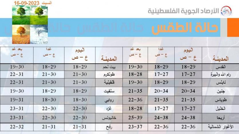 وفيما يلي النشرة الجوية الصادرة عن دائرة الارصاد الجوية: