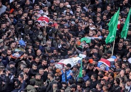 الآف المواطنين يشاركون في تشييع جثامين شهداء جنين الثلاثة