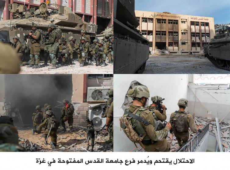 كما كان الاحتلال، وضمن حرب الإبادة الجماعية التي يُمارسها بحق أبناء الشعب الفلسطيني في قطاع غزة؛ قد اقتحم فرع جامعة القدس المفتوحة في غزة وهَدَمَ أجزاء من مبانيه، هذا بالإضافة لقصف جامعتي الأزهر والإسلامية في وقت سابق، وتدمير عدة مبانٍ فيهما بشكل كُلّي وجزئي، وكذلك مُواصلة حملات الاعتقال بحق طلبة وأساتذة المؤسسات التعليميّة الفلسطينيّة.