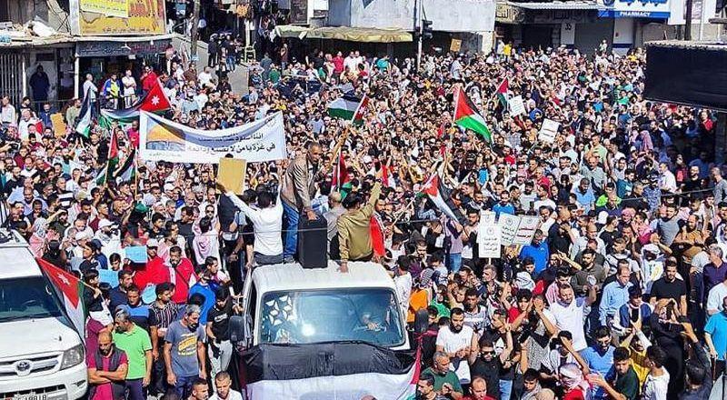 شارك عشرات آلاف الأردنيين في محافظات المملكة كافة، للجمعة السادسة على التوالي، في وقفات ومسيرات غاضبة دعما لفلسطين، وتنديدا بالعدوان الإسرائيلي.