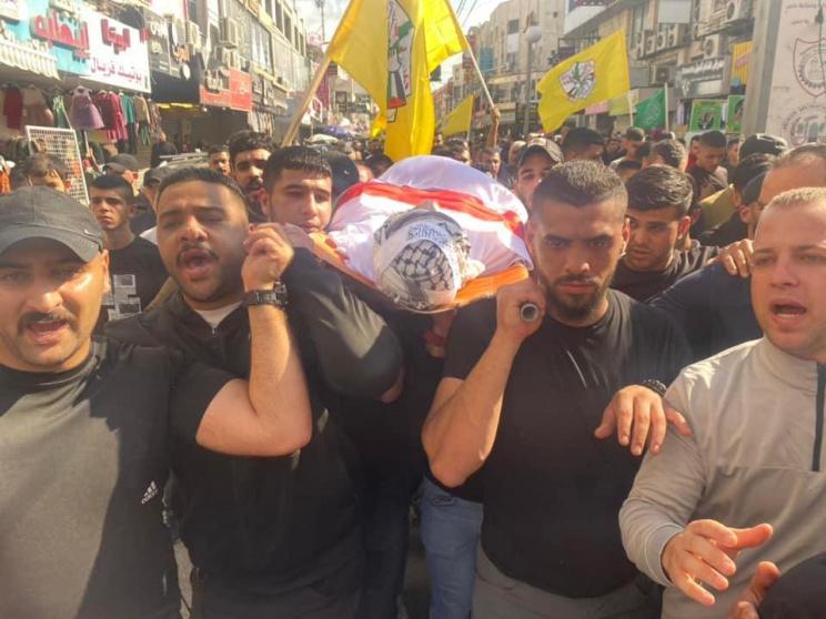 شيعت جماهير غفيرة من أبناء شعبنا، اليوم السبت، جثمان الشهيد جمال محمود عبد الرحمن مشارقة "خريوش" (21 عاما) في مخيم جنين.