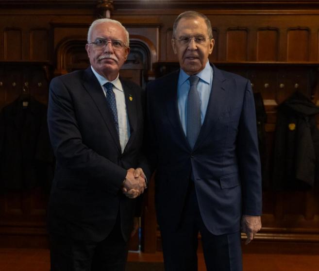 خلال لقائه نظيره الروسي الوزير المالكي يؤكد على أهمية البناء على قرارات الجمعية العامة ومجلس الأمن من أجل إنهاء العدوان الاسرائيلي ضد شعبنا