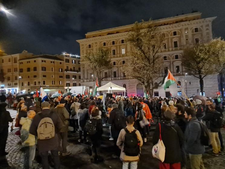 وجاءت هذه الوقفة بدعوة من الجالية الفلسطينية في روما، وجمعية أصدقاء الهلال الأحمر الفلسطيني، ومنظمات المجتمع المدني والنقابات العمالية الإيطالية.
