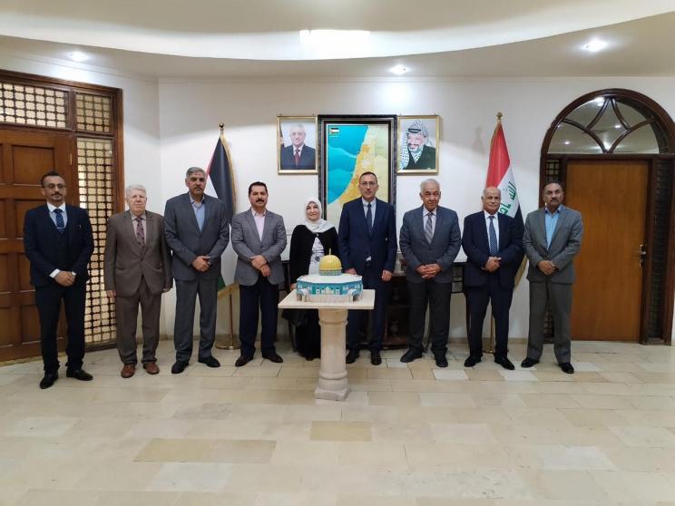 سفير فلسطين لدى العراق احمد الرويضي يبحث مع شخصيات عراقية تحركات الأحزاب والقوى العراقية في يوم التضامن مع الشعب الفلسطيني