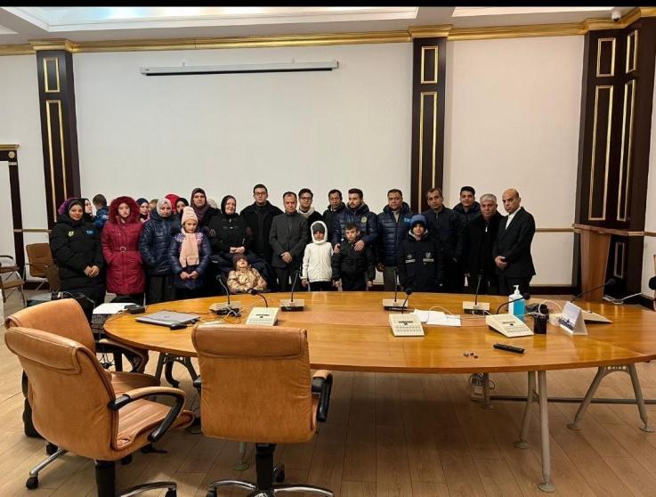 واجتمع السفير الفلسطيني أبو زيد بكافة العائلات "الفلسطينية -الكازاخستانية" وهنأهم بسلامة الوصول وتحدث معهم عن الصعاب التي واجهوها خلال فترة إجلائهم من كافة المناطق في قطاع غزة وتجمعهم في معبر رفح لإجلائهم إلى كازاخستان.