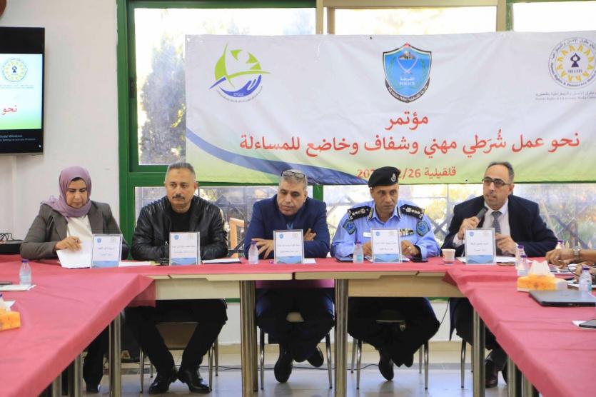 نظم مركز الاعلام وحقوق الانسان والديمقراطية " شمس " مؤتمراً تحت عنوان " نحو عمل شرطي مهني وشفاف وخاضع للمساءلة " بالتعاون مع مديرية الشرطة، وذلك في قاعة حديقة الحيوانات الوطنية بمدينة قلقيلية.