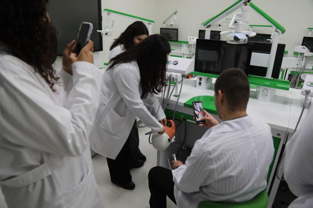 اما المبنى المجاور فسيضم قسم سريري يحتوي على 200 عيادة تدريبية مجهزة لكافة تخصصات طب الأسنان و مختبر لأبحاث الذكاء الاصطناعي في طب الأسنان.