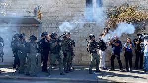 وأطلقت قوات الاحتلال الرصاص المعدني المغلف بالمطاط، وقنابل الصوت، والغاز السام المسيل للدموع تجاه المواطنين ما أدى لإصابة عدد منهم بحالات اختناق.